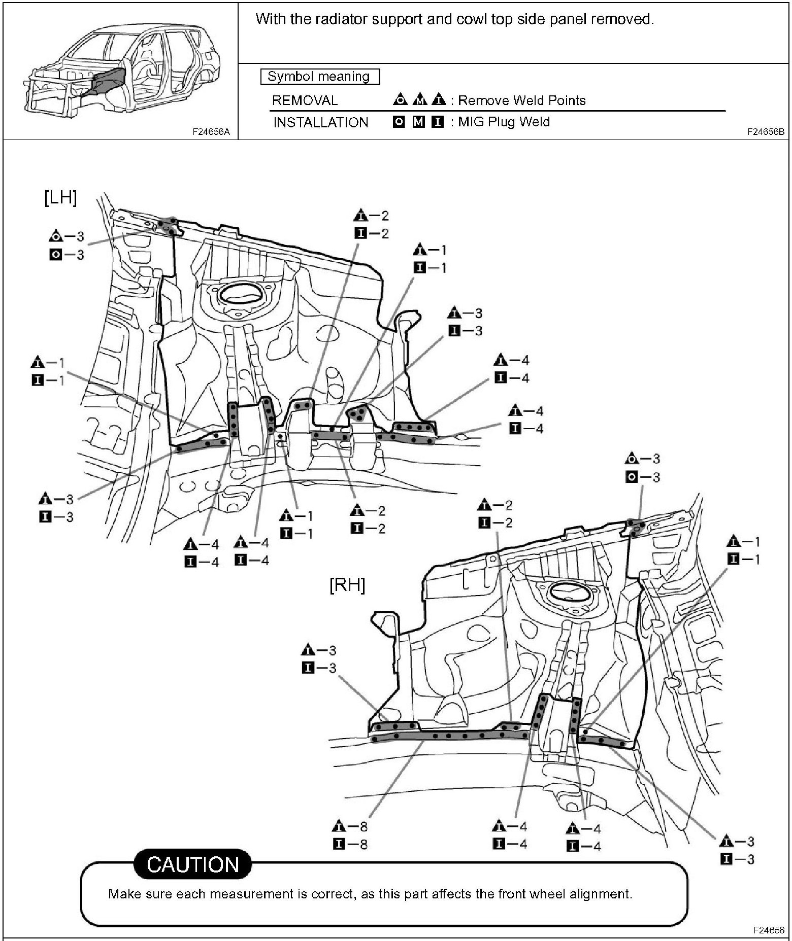 1. Inspect the fitting of the related parts around the new parts before welding. This affects the appearance of the finish.