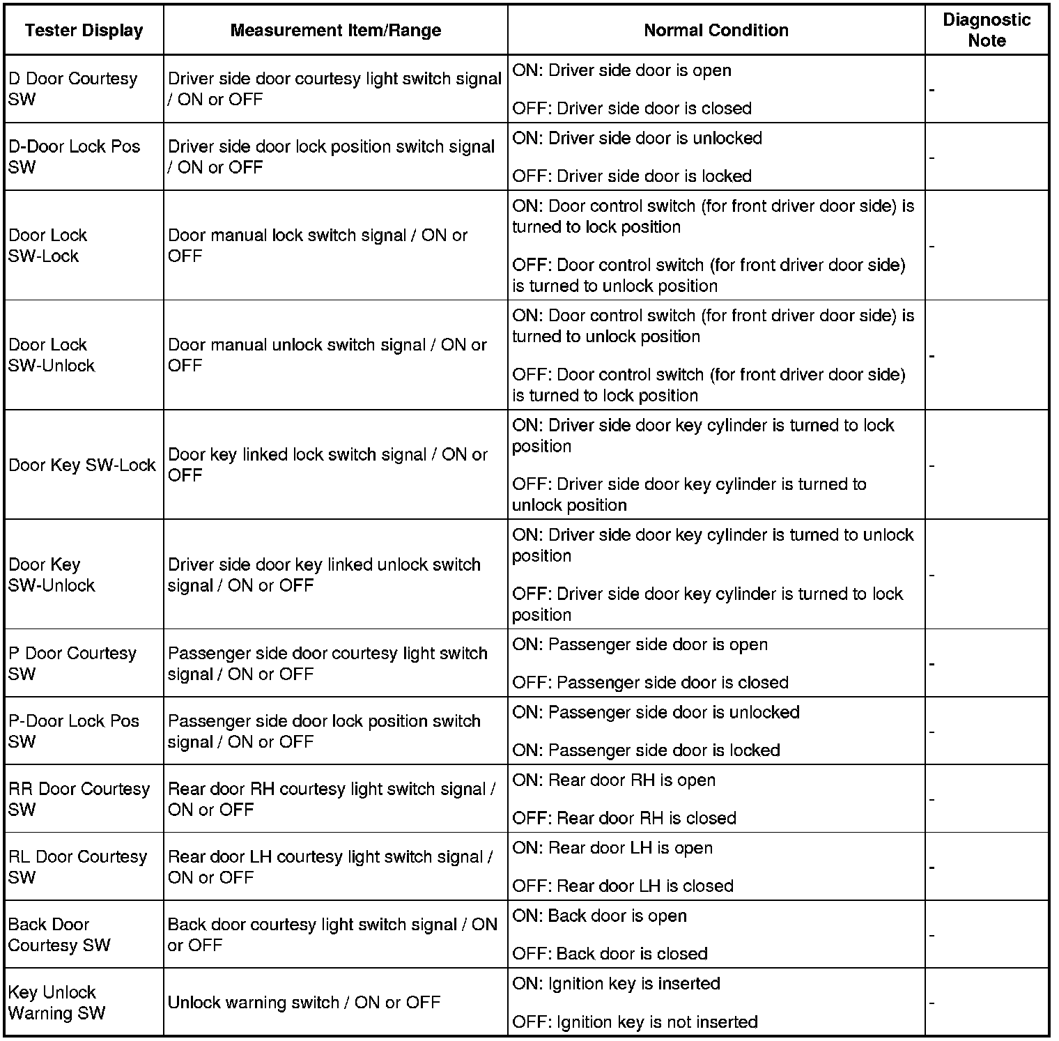 DOOR LOCK: WIRELESS DOOR LOCK CONTROL SYSTEM: DATA LIST / ACTIVE TEST