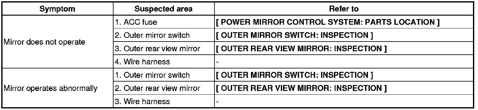 MIRROR: POWER MIRROR CONTROL SYSTEM: PROBLEM SYMPTOMS TABLE