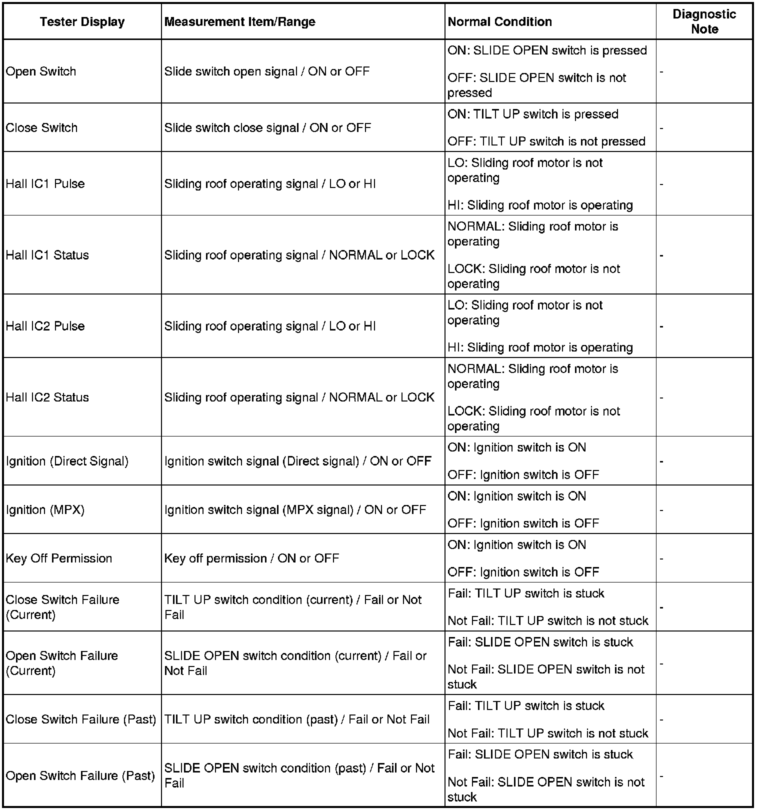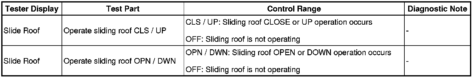 SLIDING ROOF: SLIDING ROOF SYSTEM: DATA LIST / ACTIVE TEST