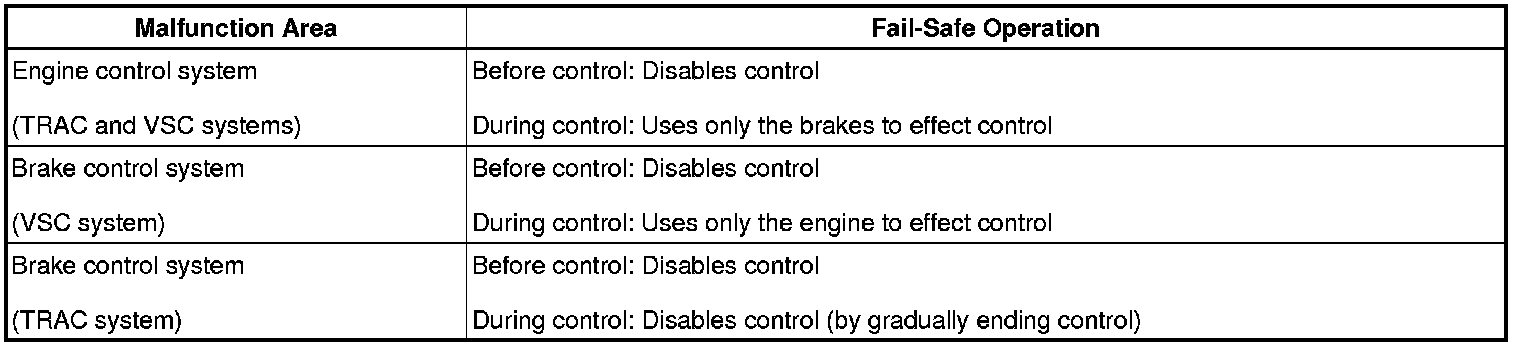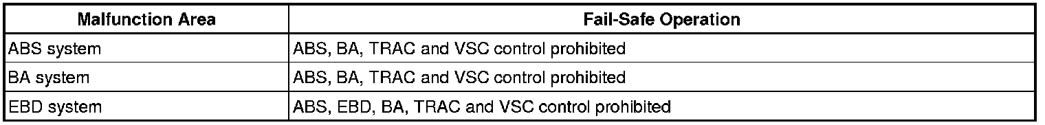 The ABS and TRACTION actuator turns off the solenoids and the ECM shuts off VSC control (traction control signal) from the skid control ECU accordingly, the result being that it is as if the ABS, TRAC and VSC systems were not installed.