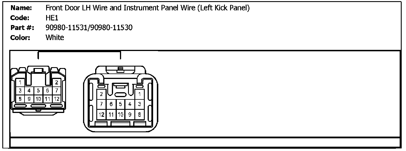HE1 (Front Door LH Wire And Instrument Panel Wire (Left Kick Panel)):