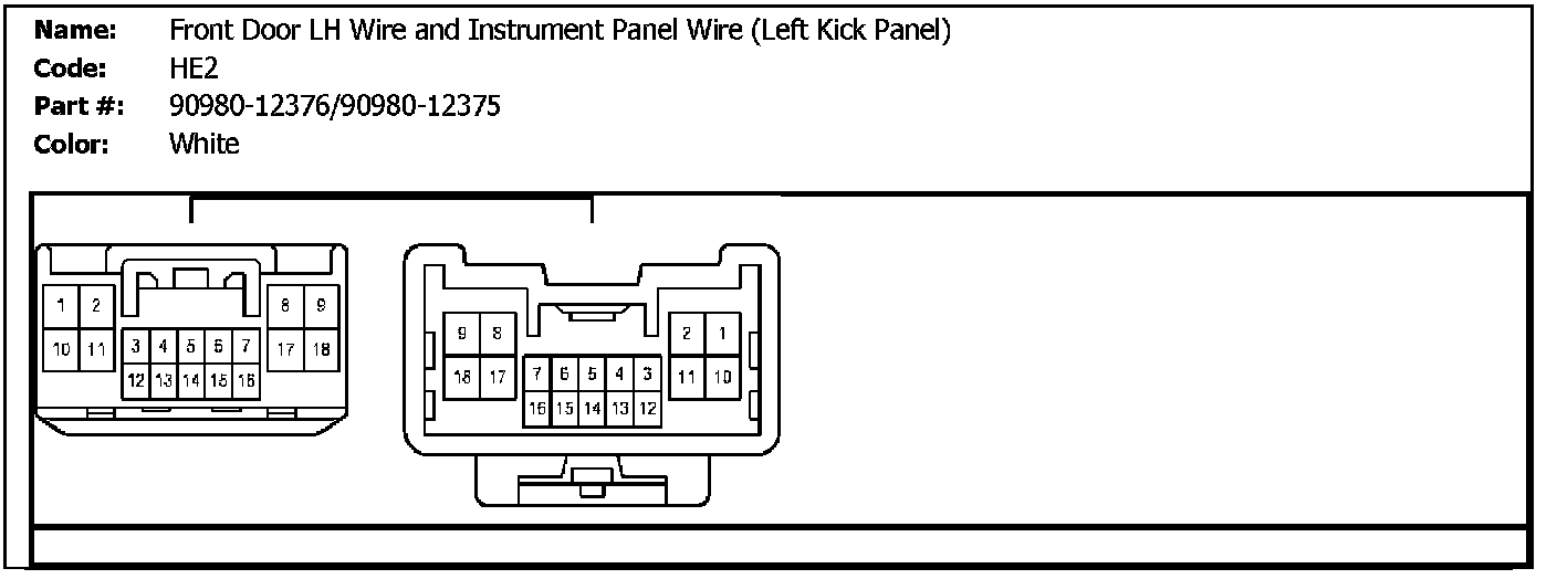 HE2 (Front Door LH Wire And Instrument Panel Wire (Left Kick Panel)):