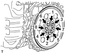 (f) Using several steps, uniformly install and tighten the 8 bolts in the sequence shown in the illustration.