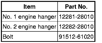 (a) Install the No. 1 and No. 2 engine hangers with the bolts as shown in the illustration.