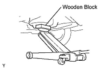 (e) Place a transmission jack underneath the engine, then put a wooden block on the jack.