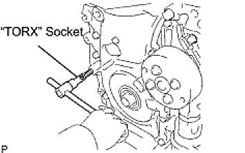 (e) Using an E10 "TORX" socket, install the stud bolt for the V-ribbed belt tensioner.