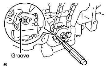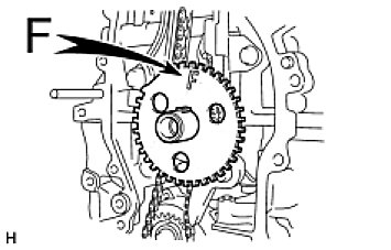 (g) Align the adjusting hole of the oil pump drive shaft sprocket with the groove of the oil pump.