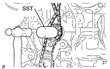 (c) Using SST and a hammer, tap in the crankshaft timing sprocket.