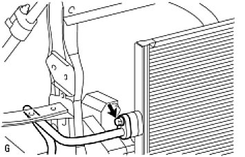(d) Install the cooler refrigerant discharge hose on the cooler condenser with the bolt.