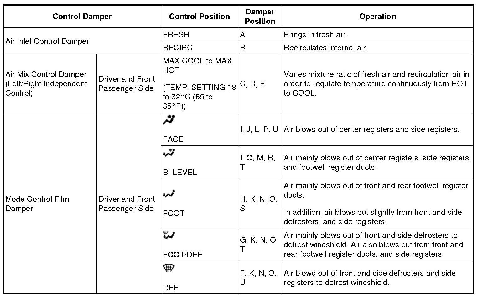 2. MODE POSITION AND DAMPER OPERATION