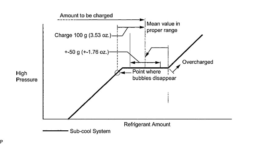 - Approximately 100 g (3.53 oz.) of refrigerant may need to be charged after bubbles disappear. The refrigerant amount should be checked by measuring its quantity, and not with the sight glass.