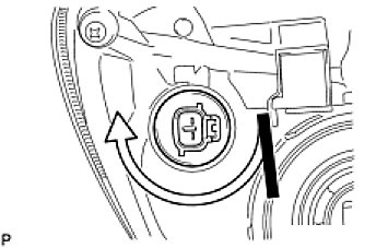 (c) Turn the bulb/socket unit in the direction indicated by the arrow to install it.