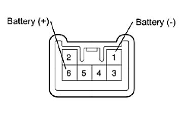 (b) Connect the positive (+) lead from the battery to terminal 6 and the negative (-) lead to terminal 1, then check that the light comes on.