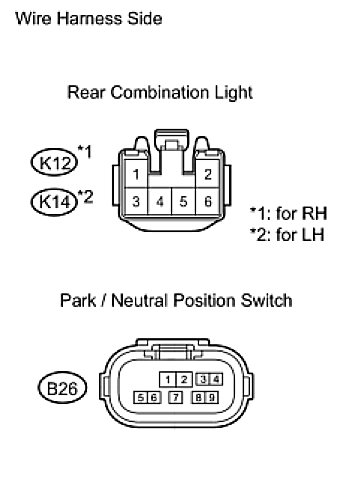 (b) Disconnect the K12 and K14 rear combination light assembly connectors.