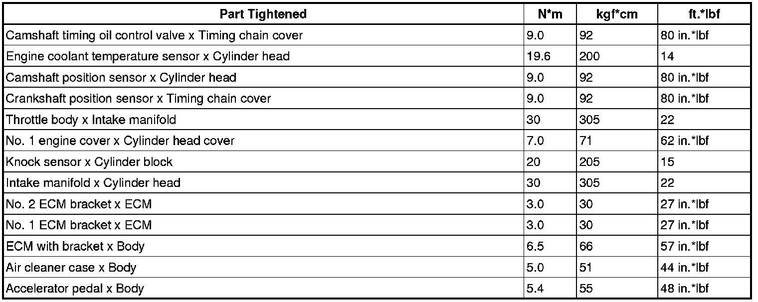 SERVICE SPECIFICATIONS: 2AZ-FE ENGINE CONTROL SYSTEM: TORQUE SPECIFICATIONS