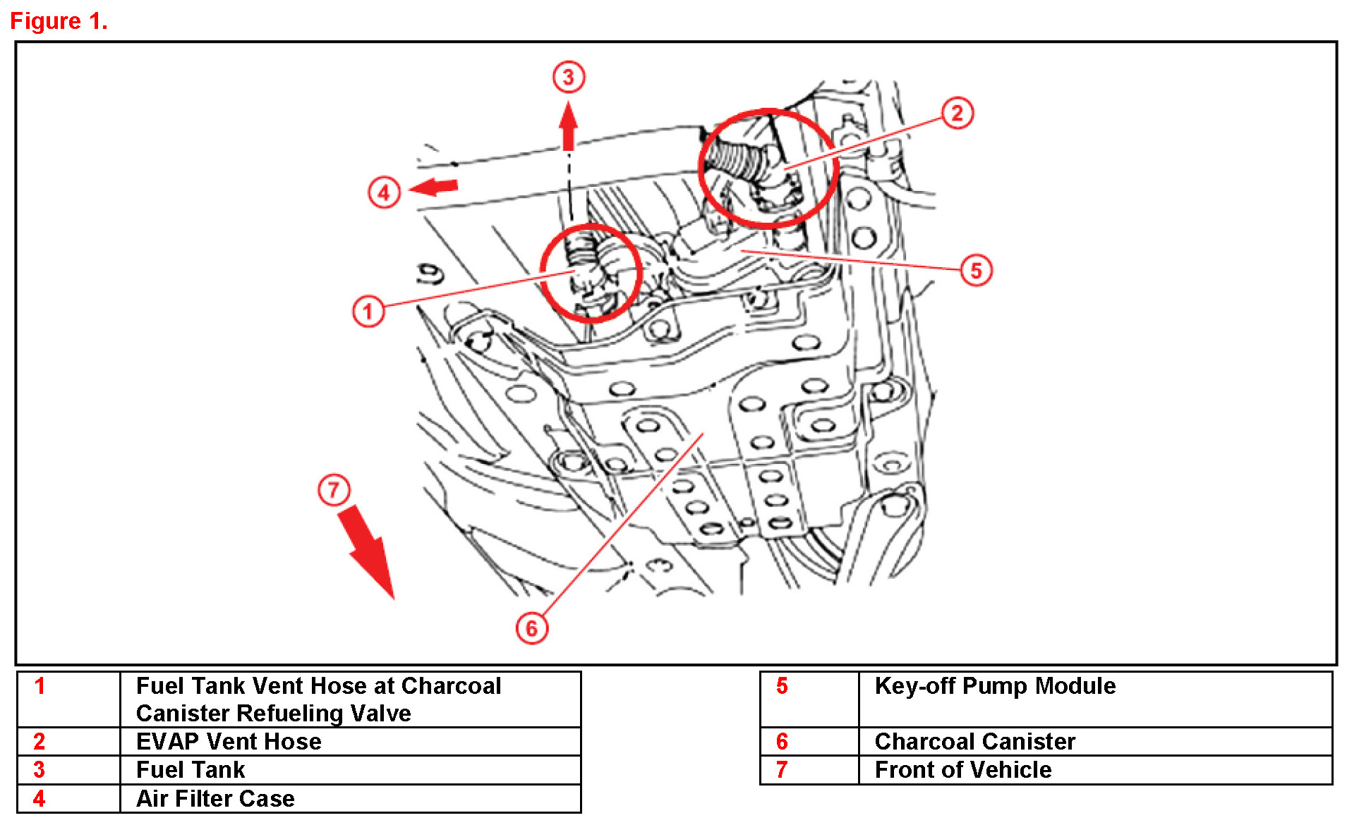 4. Disconnect the EVAP vent hose from the Key Off Pump Module.