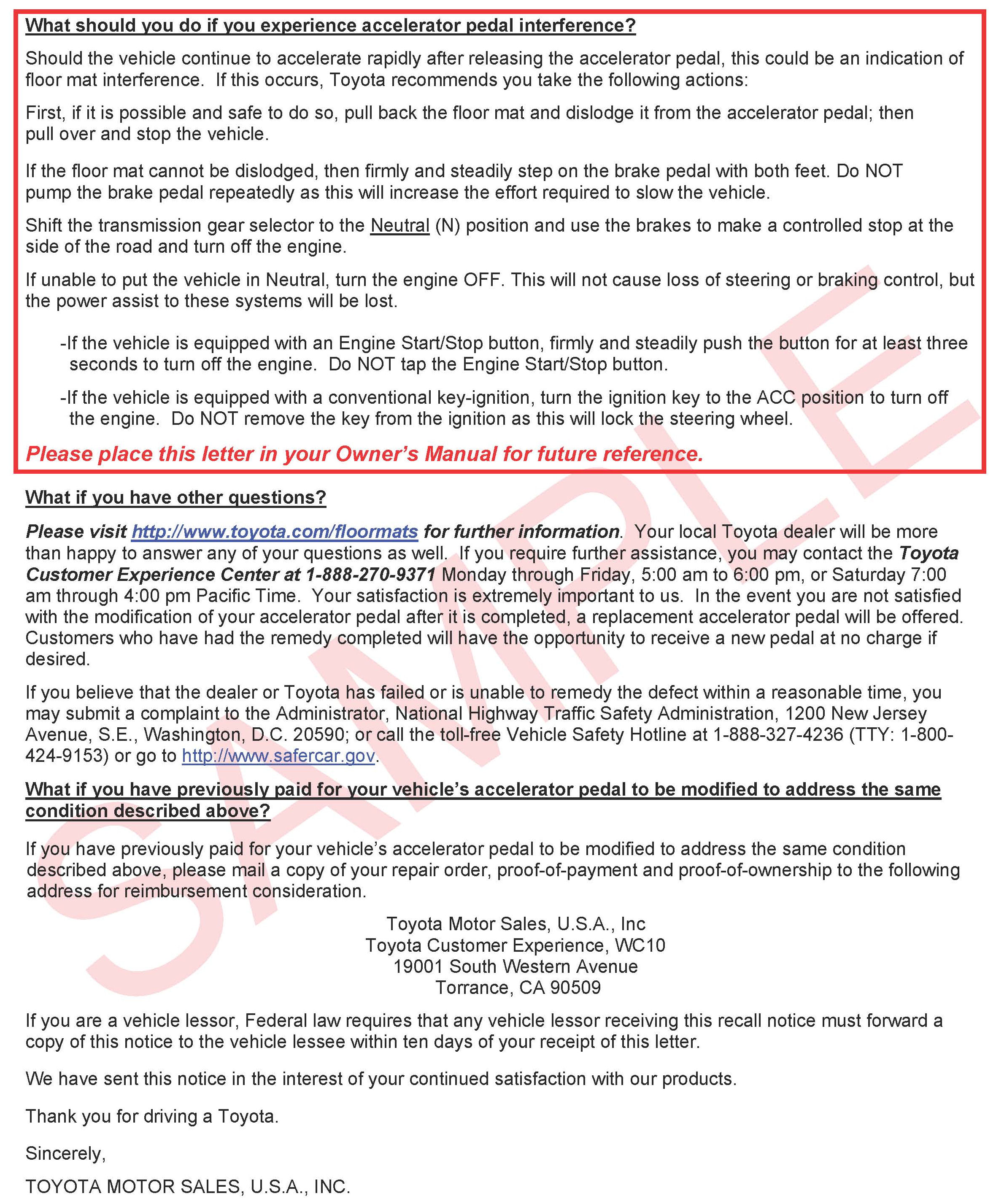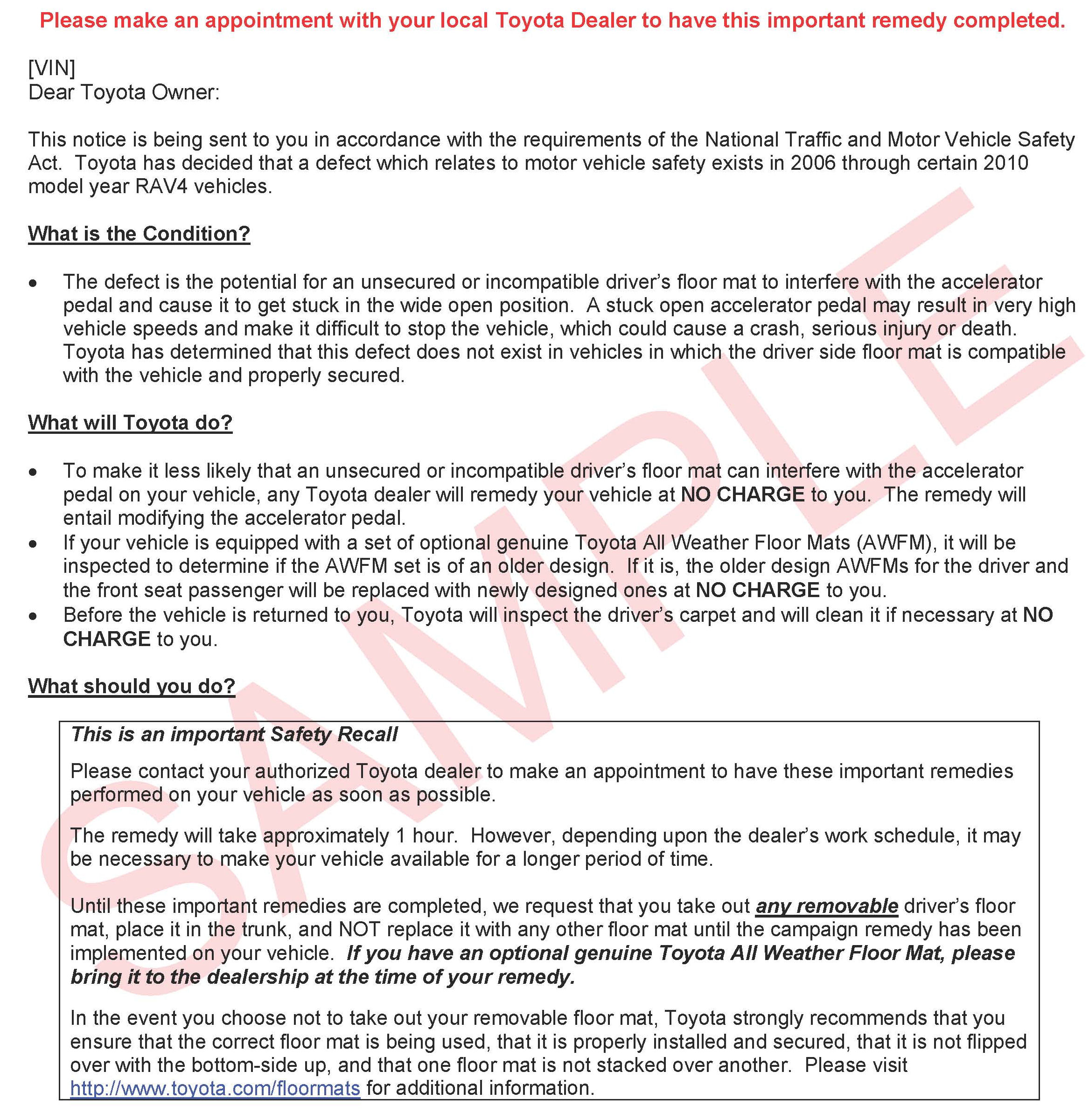 Recall - Accelerator Pedal/Floor Mat Interference