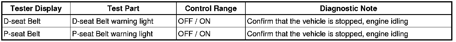SEAT BELT: SEAT BELT WARNING SYSTEM: DATA LIST / ACTIVE TEST