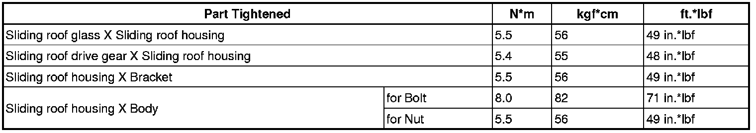 SERVICE SPECIFICATIONS: SLIDING ROOF: TORQUE SPECIFICATIONS