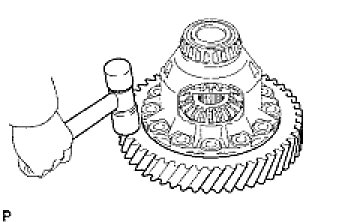 (a) Using a punch and hammer, loosen the staked part of the differential case.