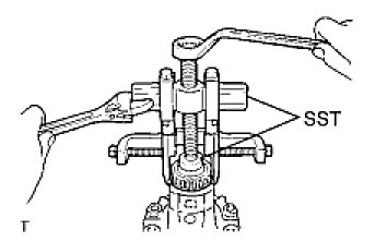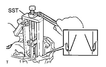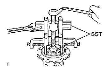 (a) Using SST, remove the front differential case tapered roller bearing rear inner race from the differential case.