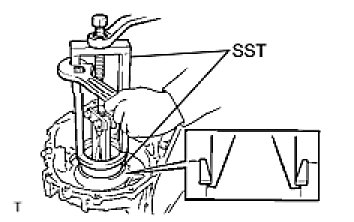(b) Using SST, remove the front differential case tapered roller bearing front outer race and differential case washer.