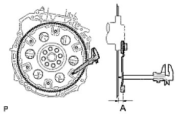(b) Using a vernier caliper, measure dimension A between the transaxle and the end surface of the drive plate.