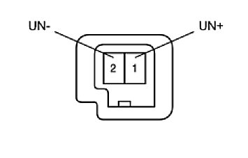 (b) Connect the battery's positive (+) lead to terminal 1 (UN+) and the battery's negative (-) lead to terminal 2 (UN-).