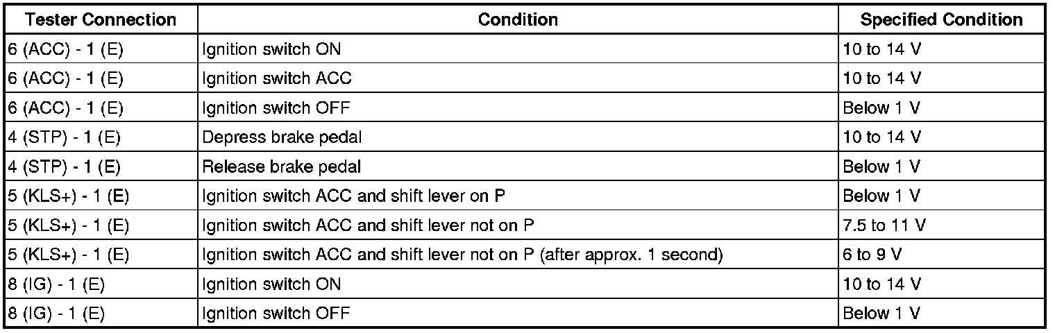 U241E AUTOMATIC TRANSAXLE: SHIFT LOCK SYSTEM: ON-VEHICLE INSPECTION