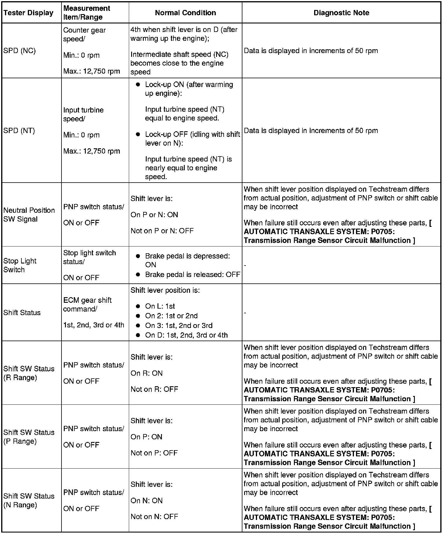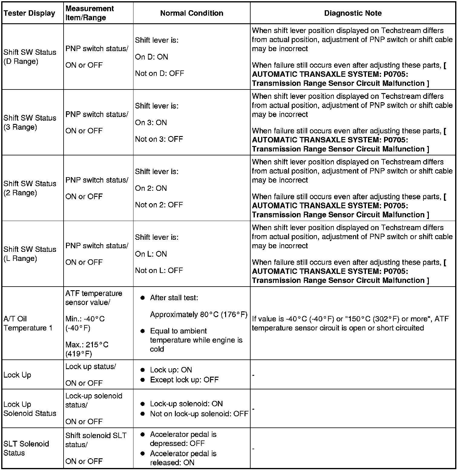 U241E AUTOMATIC TRANSAXLE: AUTOMATIC TRANSAXLE SYSTEM: DATA LIST / ACTIVE TEST