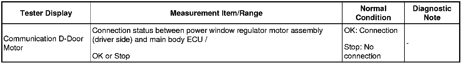 - The power window control system prohibits the AUTO UP / DOWN function when the jam protection function malfunctions. Therefore, troubleshoot the power window control system after confirming that no diagnostic codes are displayed.