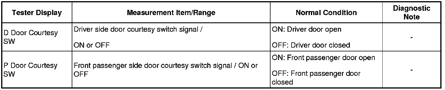 3. READ VALUE USING TECHSTREAM (DOOR COURTESY LIGHT SWITCH)