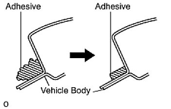 (1) On the contact surface of the vehicle body, use a knife to cut away excess adhesive as shown in the illustration.