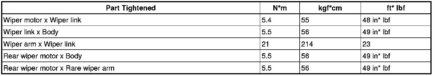 SERVICE SPECIFICATIONS: WIPER AND WASHER: TORQUE SPECIFICATIONS
