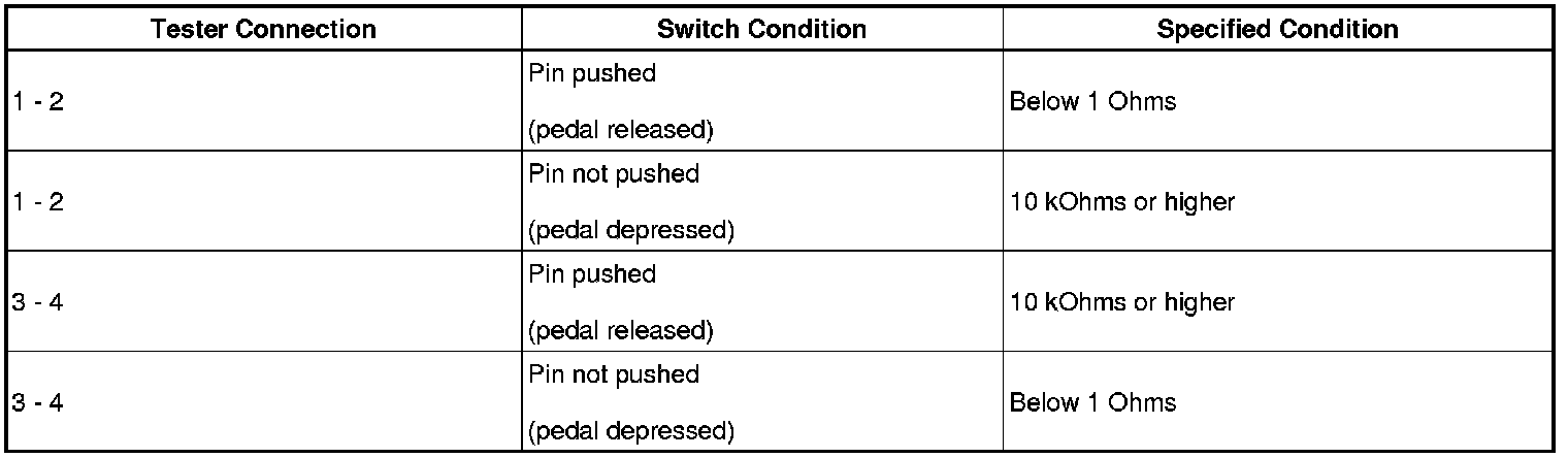 When the brake pedal is depressed, this switch sends a signal to the ECM. Then the ECM cancels the operation of the lock-up clutch while braking is in progress.