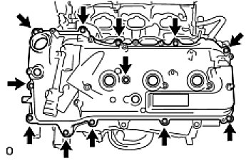 (a) Remove the 12 bolts, cylinder head cover and gasket.
