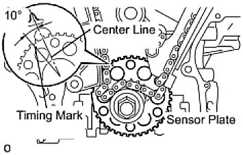 (a) Turn the crankshaft counterclockwise 10° to loosen the chain of the crankshaft timing gear.