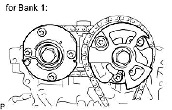 (c) Turn the camshaft timing gear on the Bank 1 clockwise (approximately 60°) and set it as shown in the illustration. Be sure to loosen the chain between the center banks.
