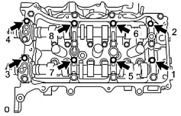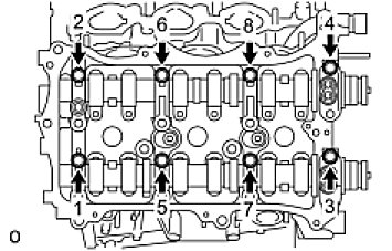 (c) Uniformly loosen and remove the 8 bearing cap bolts in the sequence shown in the illustration.
