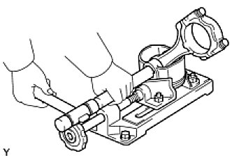 (b) Push the piston, connecting rod and upper bearing through the top of the cylinder block.