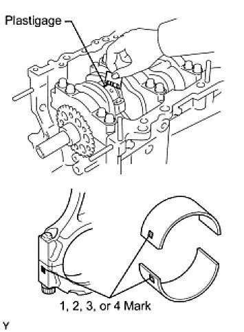 HINT: If replacing a bearing, replace it with one that has the same number as its respective connecting rod cap. Each bearing's standard thickness is indicated by a 1, 2, 3 and 4 mark on its surface.