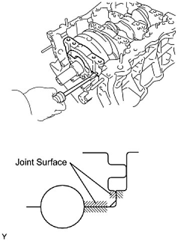 - Be careful not to damage the joint surface of the cylinder block and main bearing caps.