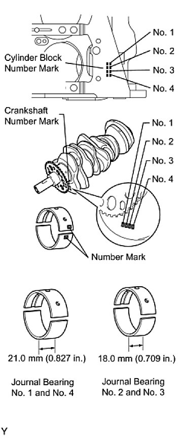 HINT: A number is marked on each main bearing cap to indicate the installation position.