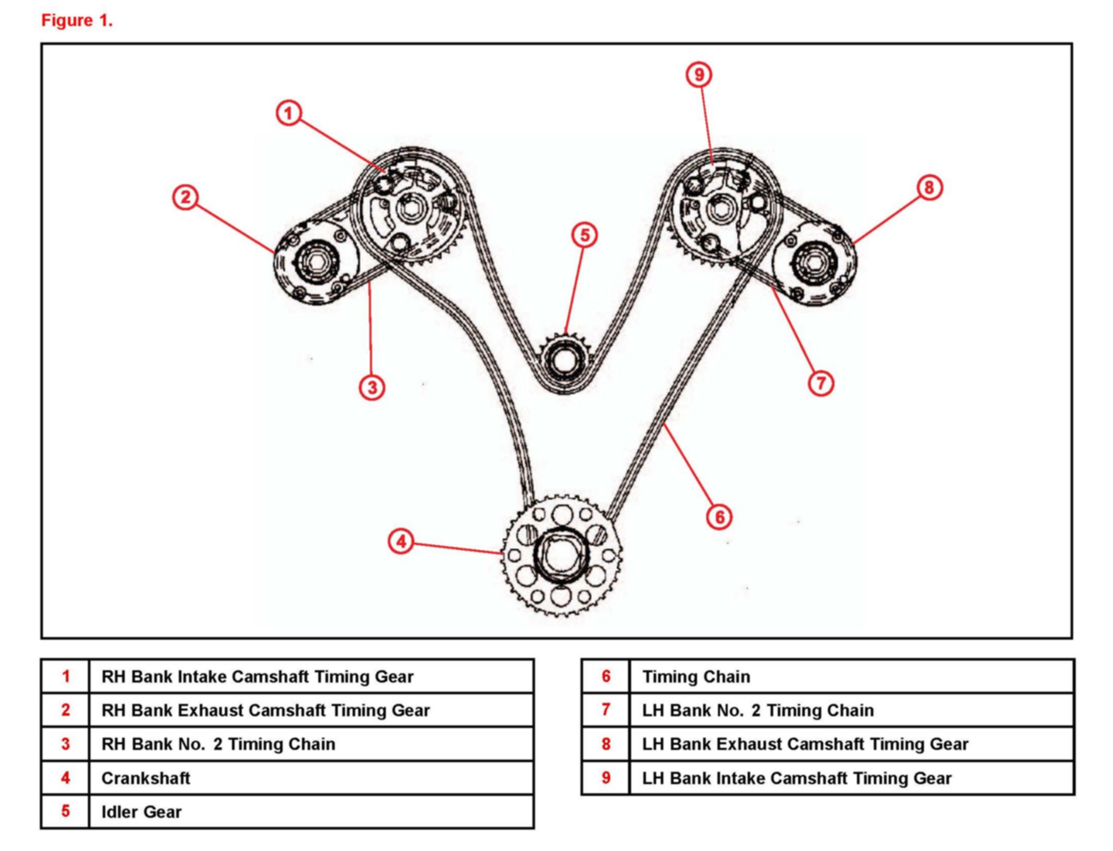 This relationship MUST be maintained. The intake gear is timed in relation to the crankshaft via the timing chain; the exhaust gear is timed in relation to the intake gear via the No. 2 timing chain.
