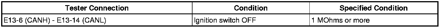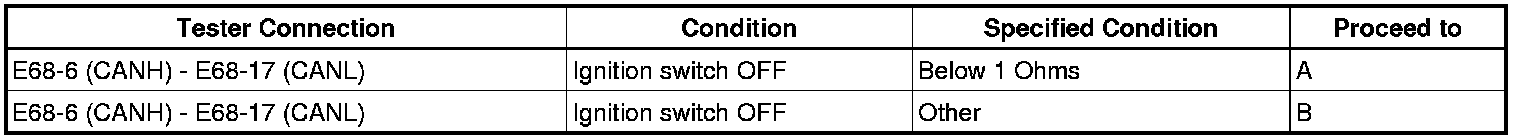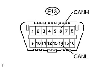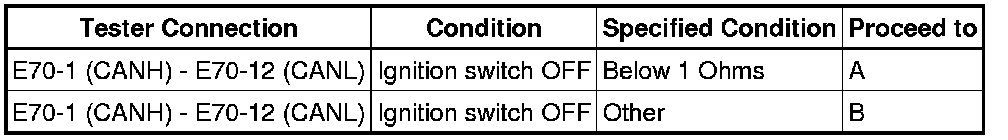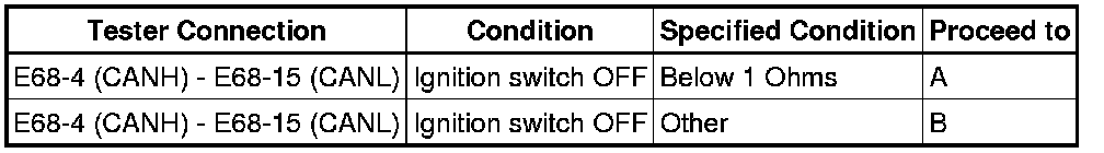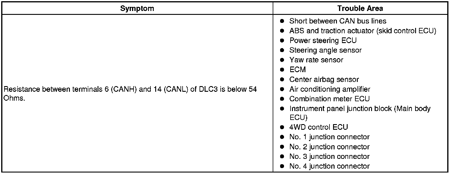 There may be a short circuit between the CAN bus lines when the resistance between terminals 6 (CANH) and 14 (CANL) of the DLC3 is below 54 Ohms.