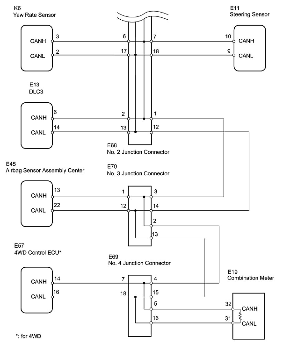NOTE: For vehicles without 4WD, go to "CHECK CAN BUS LINES FOR SHORT CIRCUIT (NO. 4 JUNCTION CONNECTOR - COMBINATION METER ECU)".