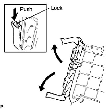 (1) Raise the 2 levers while pushing the locks on the 2 levers, and disconnect the 2 ECM connectors.