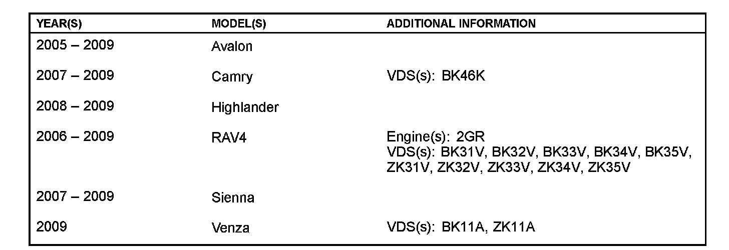 ^ Applicability has been updated to include 2009 model year Venza.