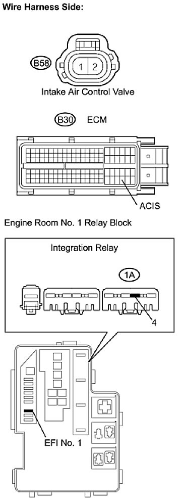 3. CHECK WIRE HARNESS (INTAKE AIR CONTROL VALV - ECM, INTEGRATION RELAY)